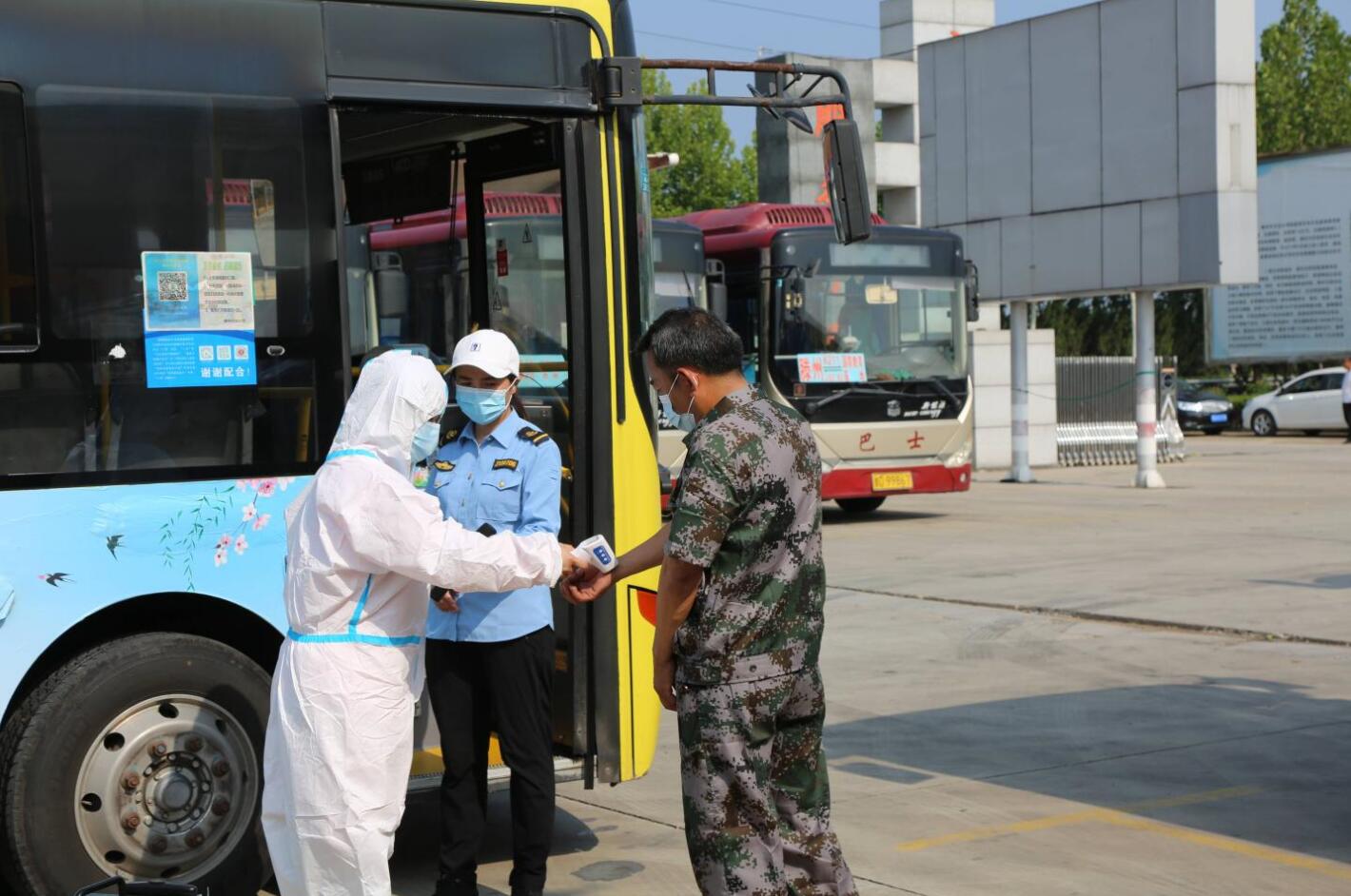 演練科目一為模擬公司親情巴士某線路,在日常運(yùn)營(yíng)過(guò)程中駕駛員對(duì)上車的乘客逐一測(cè)體溫、查驗(yàn)“三碼”,發(fā)現(xiàn)一準(zhǔn)備乘車人員體溫38度且行程碼異常,駕駛員對(duì)該名乘客進(jìn)行了安撫并立即向公司報(bào)備。公司疫情防控應(yīng)急小組及時(shí)抵達(dá)現(xiàn)場(chǎng),對(duì)駕駛員和所有乘客分別進(jìn)行隔離轉(zhuǎn)運(yùn),同時(shí)對(duì)車輛全面消毒、通風(fēng),并將車輛進(jìn)行封存。